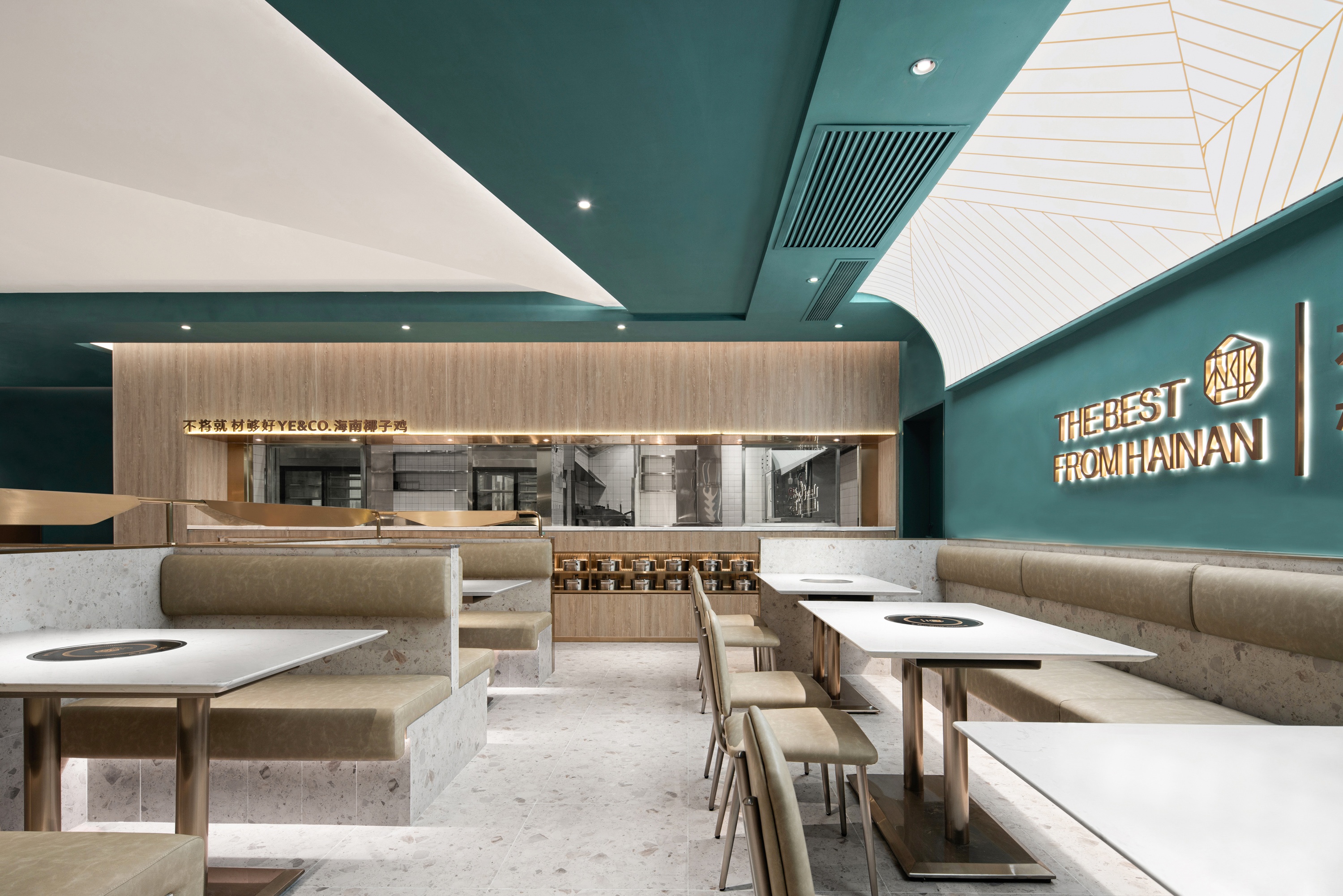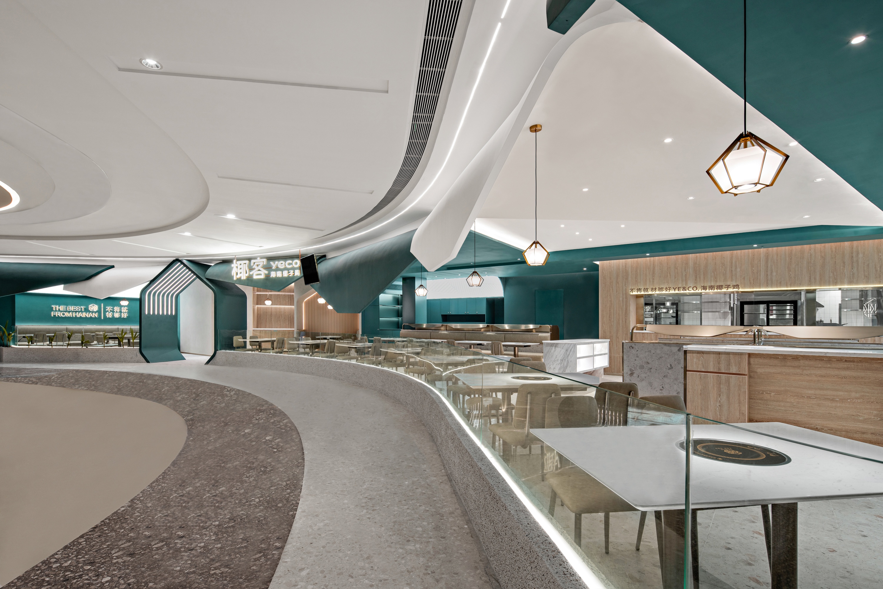 椰客·设计的聚焦与延续:沙滩、海浪、椰树、阳光,走进椰子树下的凉荫,也走进闹市·广州ICC环贸中心,视觉和味觉触碰,又见椰客新浪潮。椰林海岸的浪漫风景是「椰客YE&CO.」着重打造的沉浸式体验场景。椰子造型的入口、卡座、灯笼,让椰客餐厅极具备辨识度。椰子元素的解构,海滩视觉的呈现,品牌符号的重复出现强化人们对椰客的记忆。