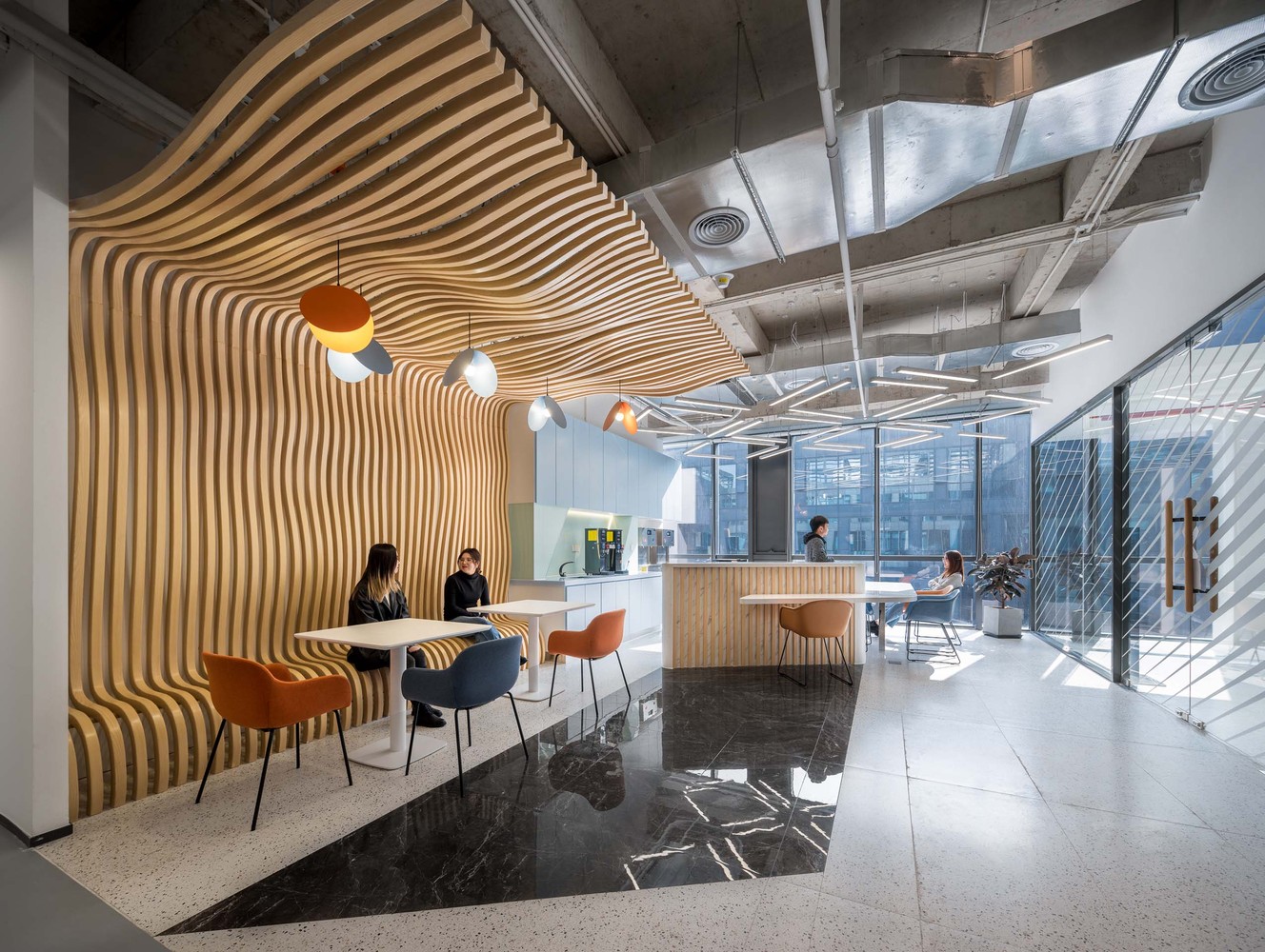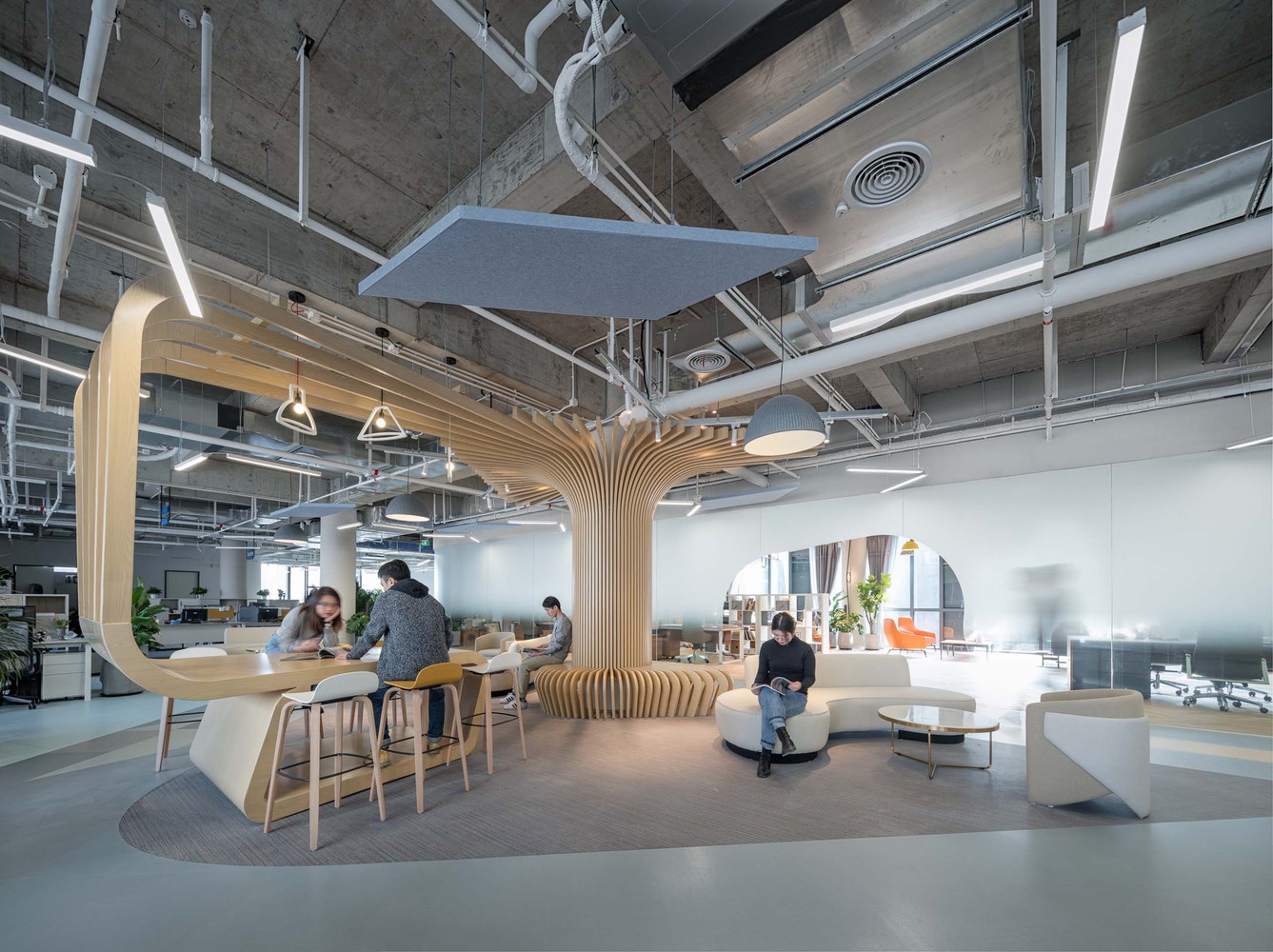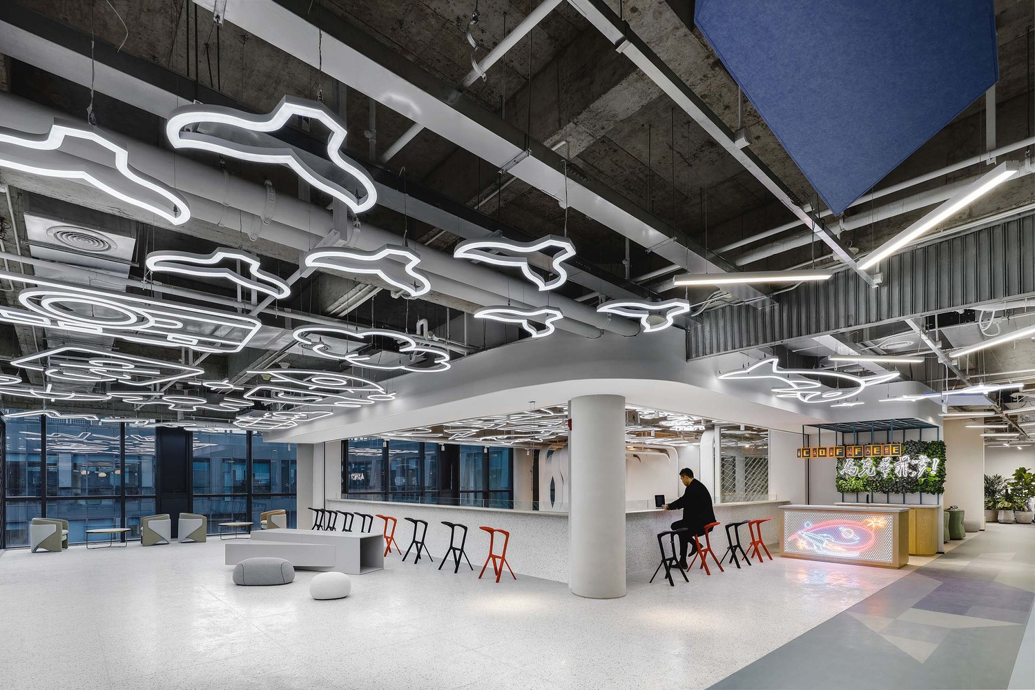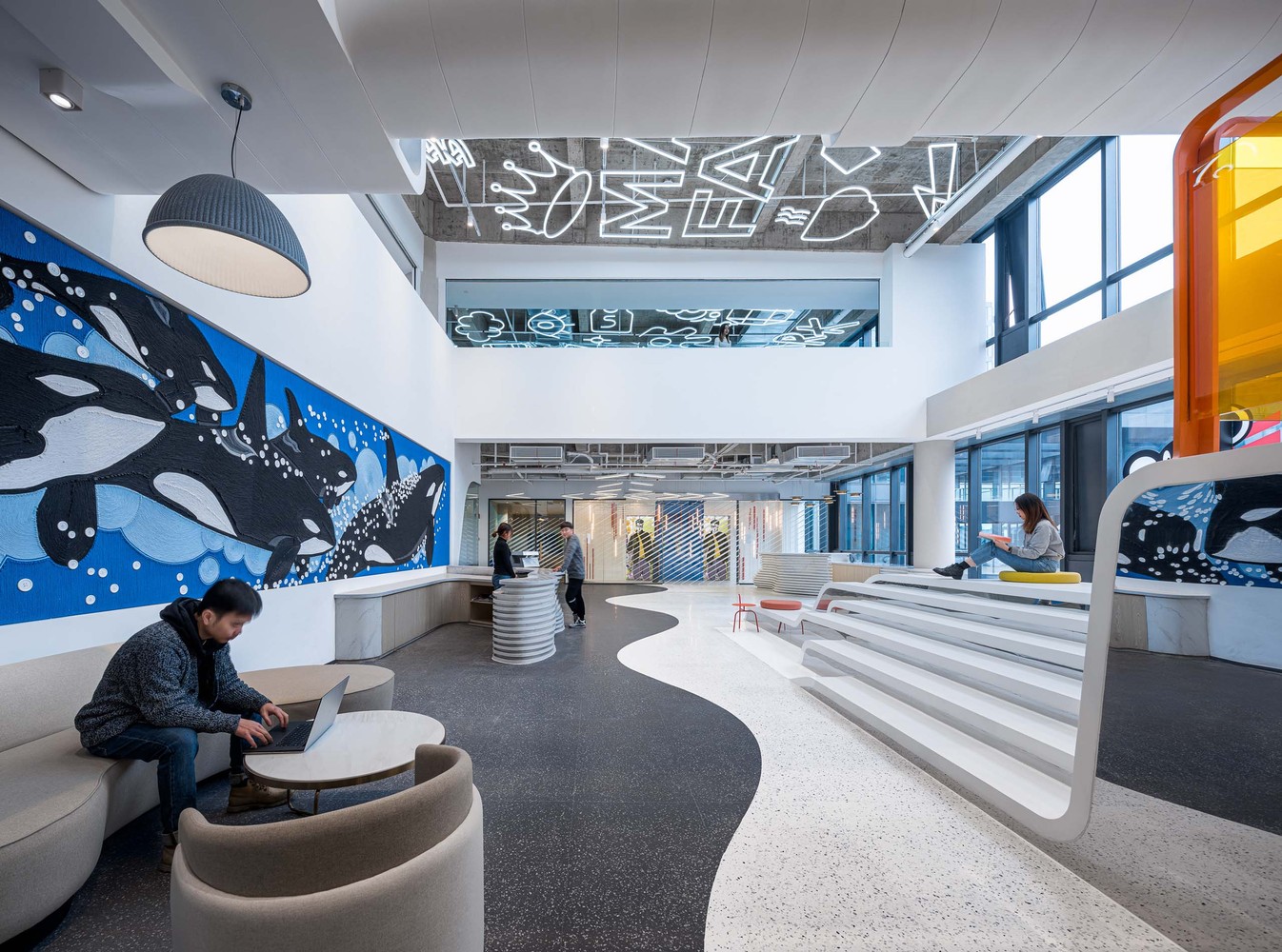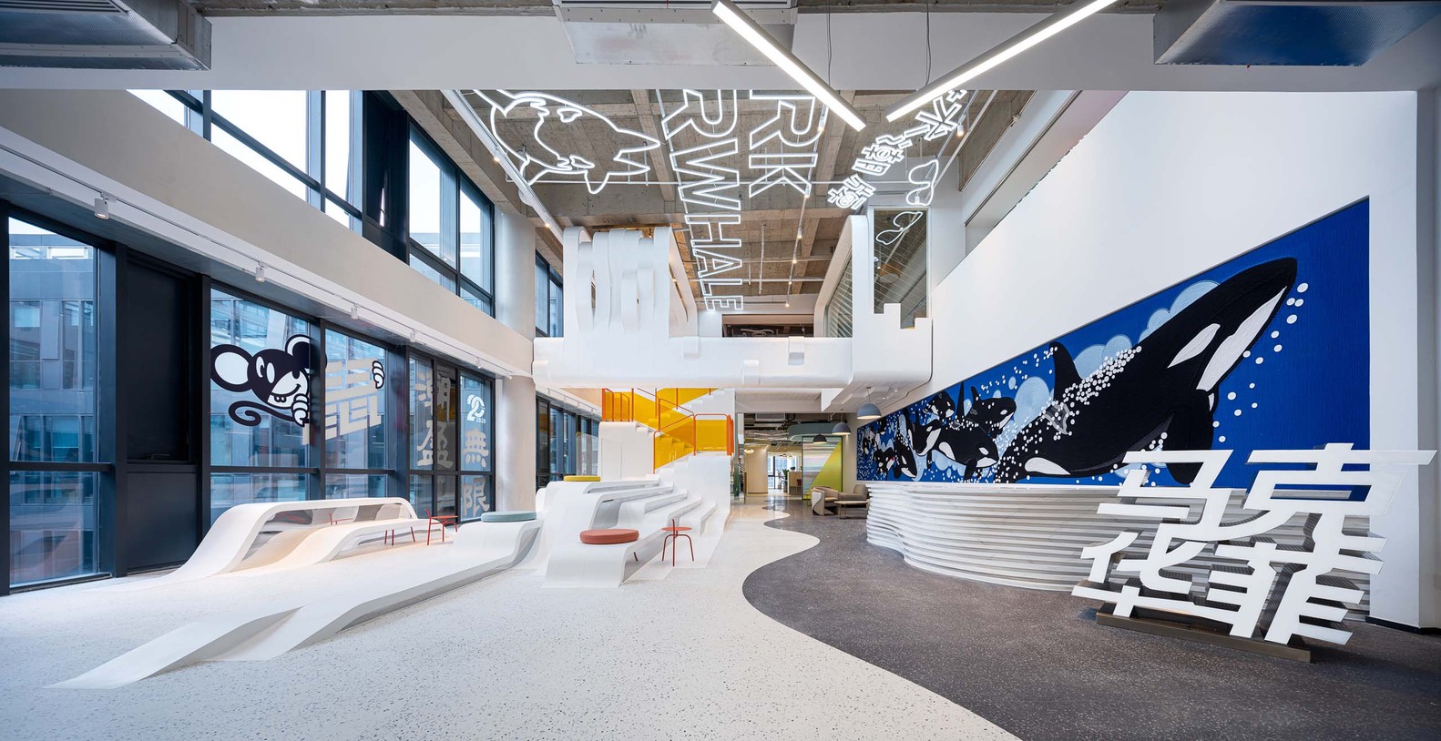 尖端时尚品牌马克华菲(Mark Fairwhale)的总部位于上海。该项目基于品牌文化基因,主要运用了水与鲸鱼的主题元素,并且创造出灵活而又敏捷的工作空间。同时借此呼应其新鲜年轻的风格定位。