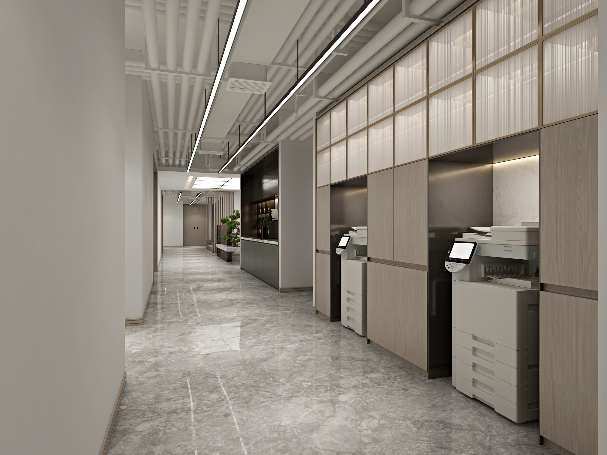 本案定位为现代简约风格,整体硬装以黑白灰作为主色调,运用暖木色作为主轴,让整体空间更有温馨惬意的舒适感,颠覆人们对于工作场域冰冷生涩的刻板印象,简洁而利落的设计让空间更为宽广通透,形塑现代风格之韵味