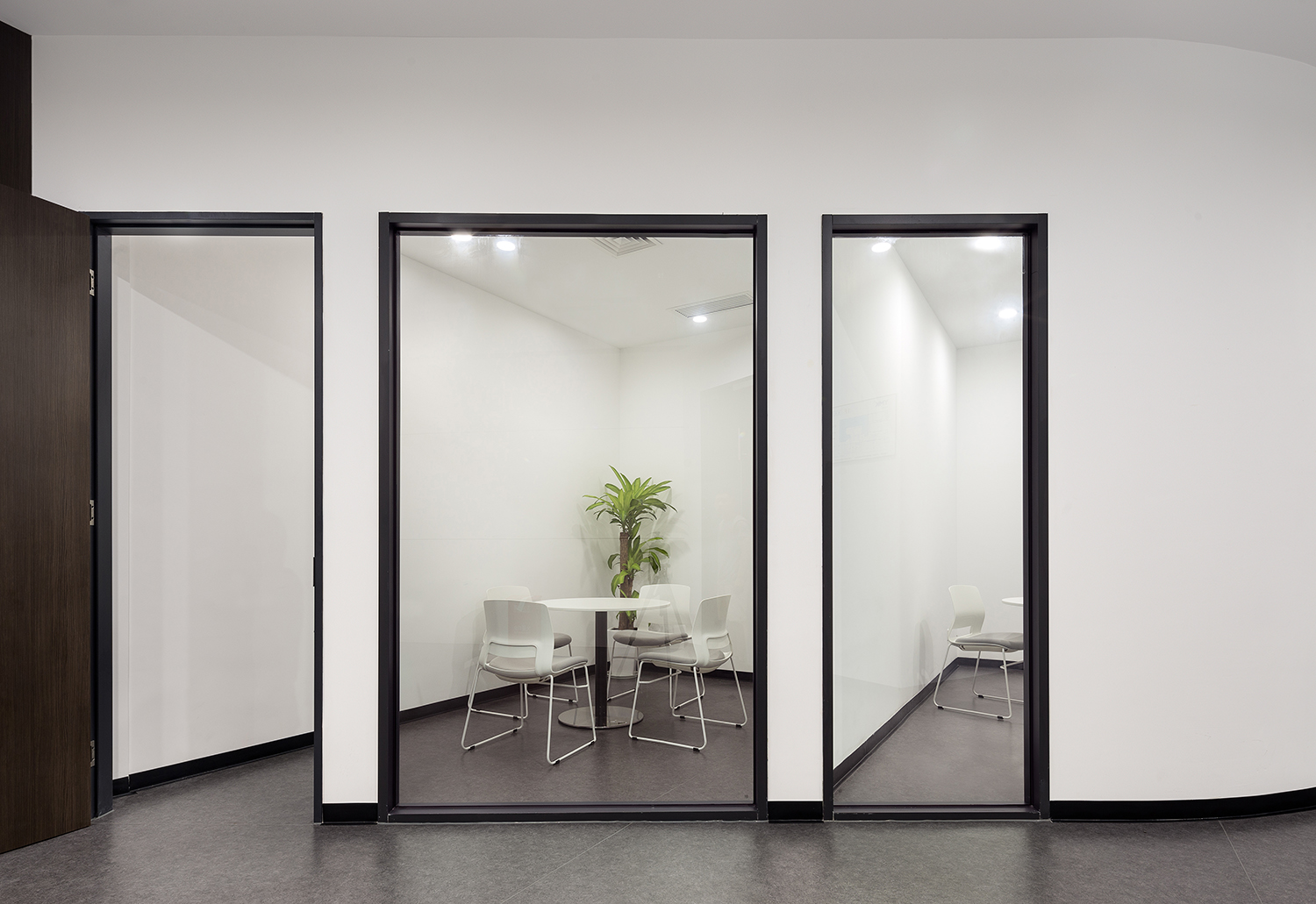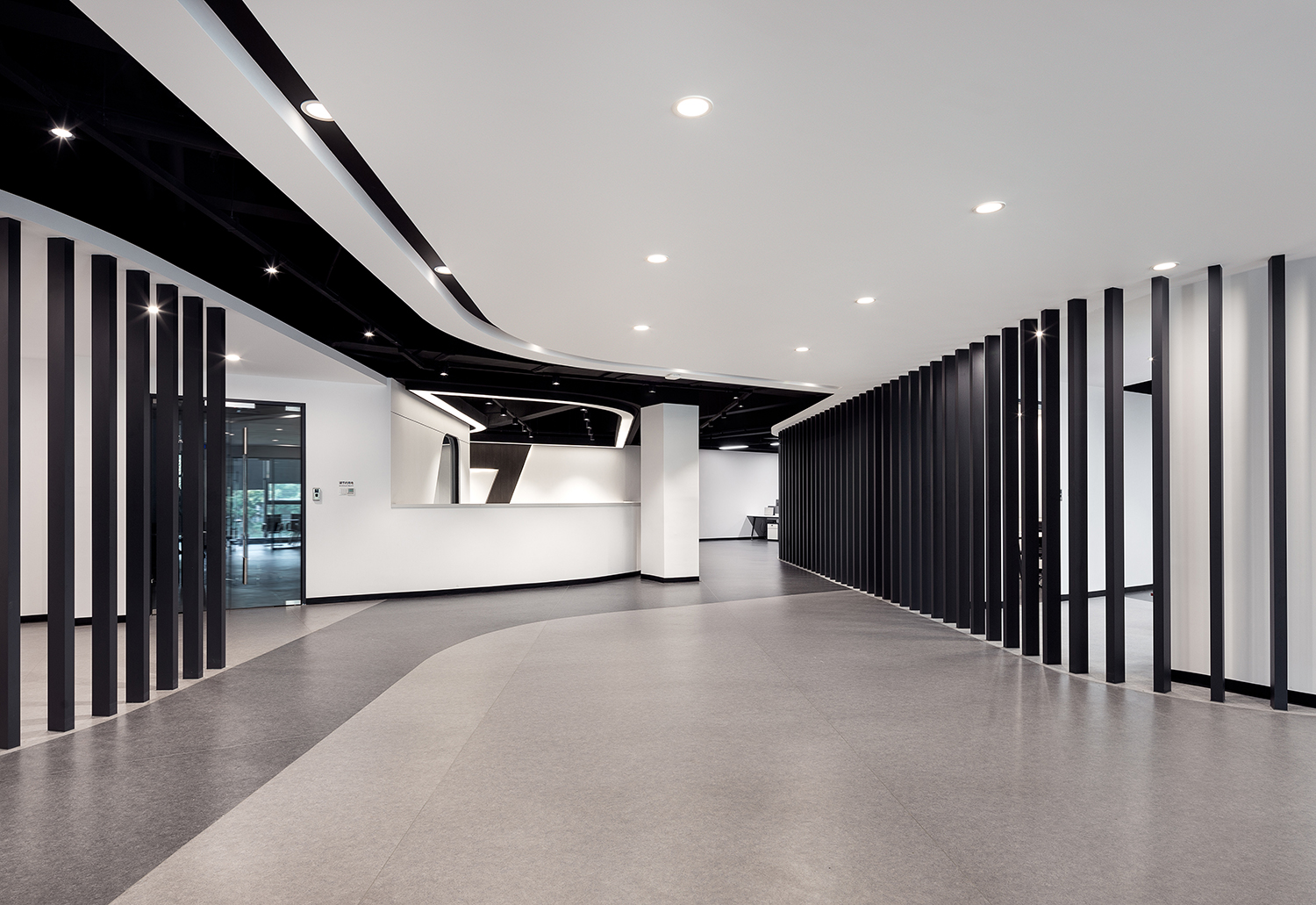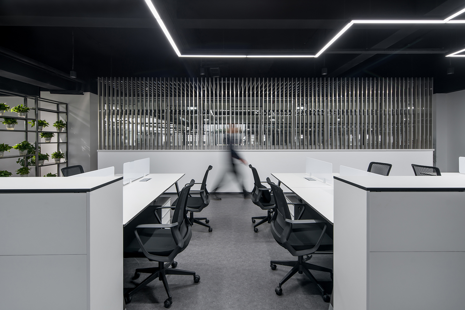 办公空间的主要配色是黑白灰,利用横纵交错的线条及丰富多变的黑白灰,体现专业、高效、冷峻的形象。