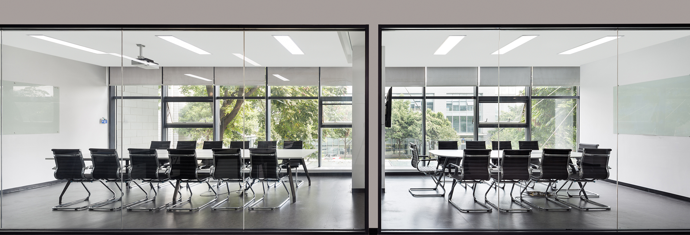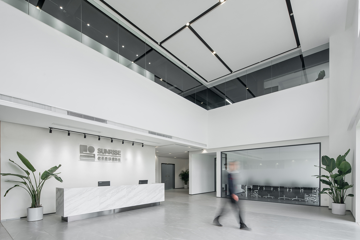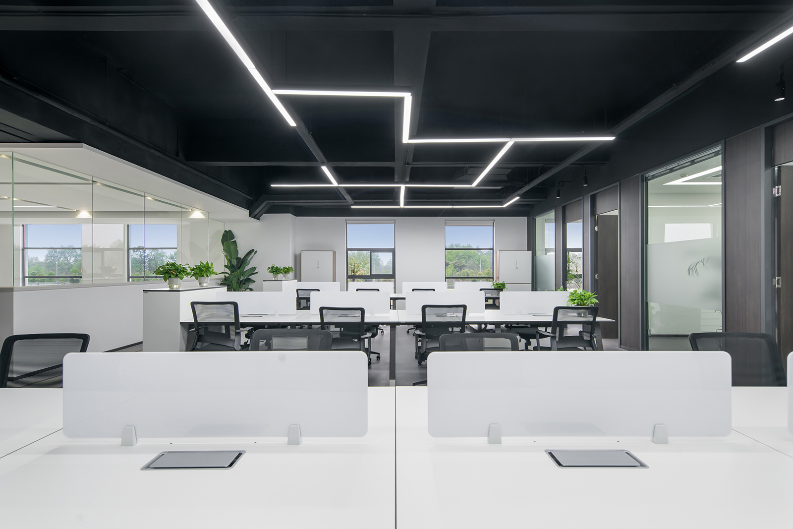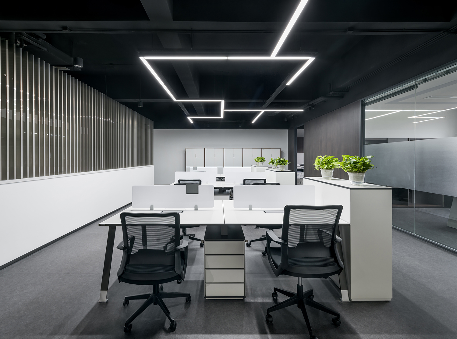 办公空间的主要配色是黑白灰,利用横纵交错的线条及丰富多变的黑白灰,体现专业、高效、冷峻的形象。