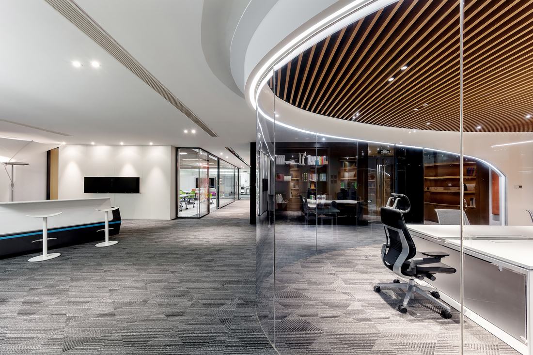 办公室与展厅的多重变奏,空间既要独立而连贯又互不干扰,由超前未来区到专业办公功能展示区,这是设计的一次变奏
