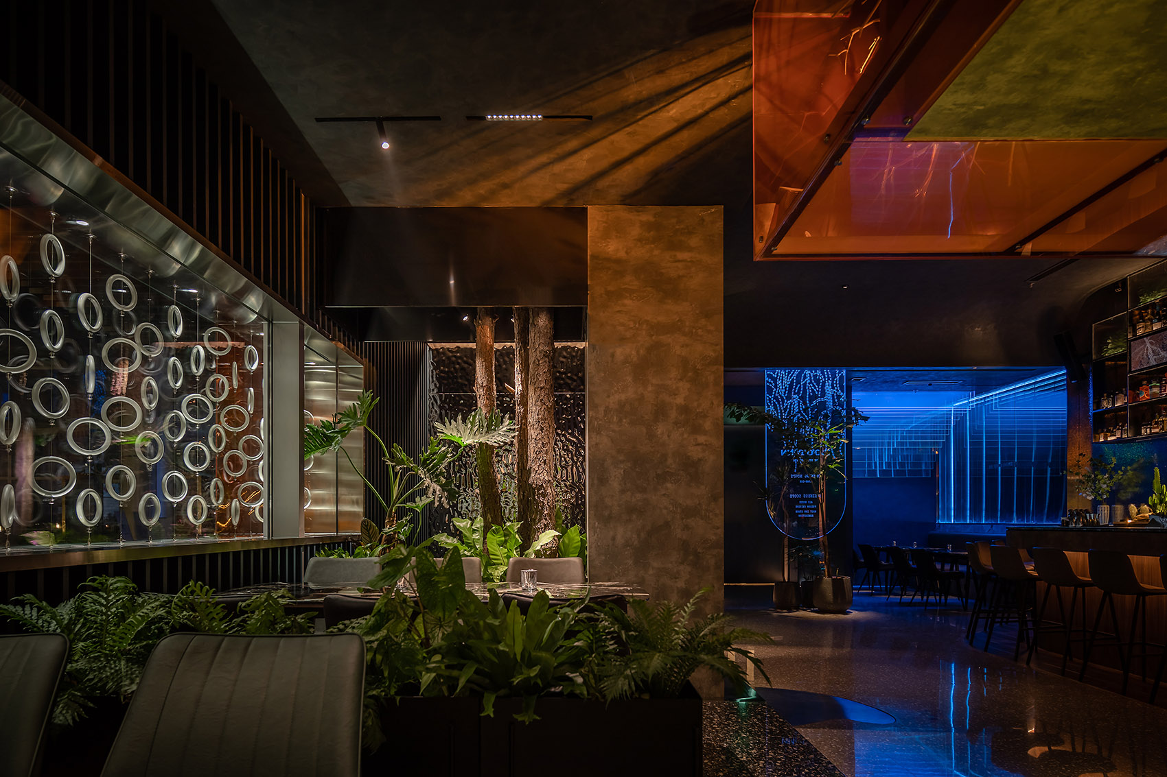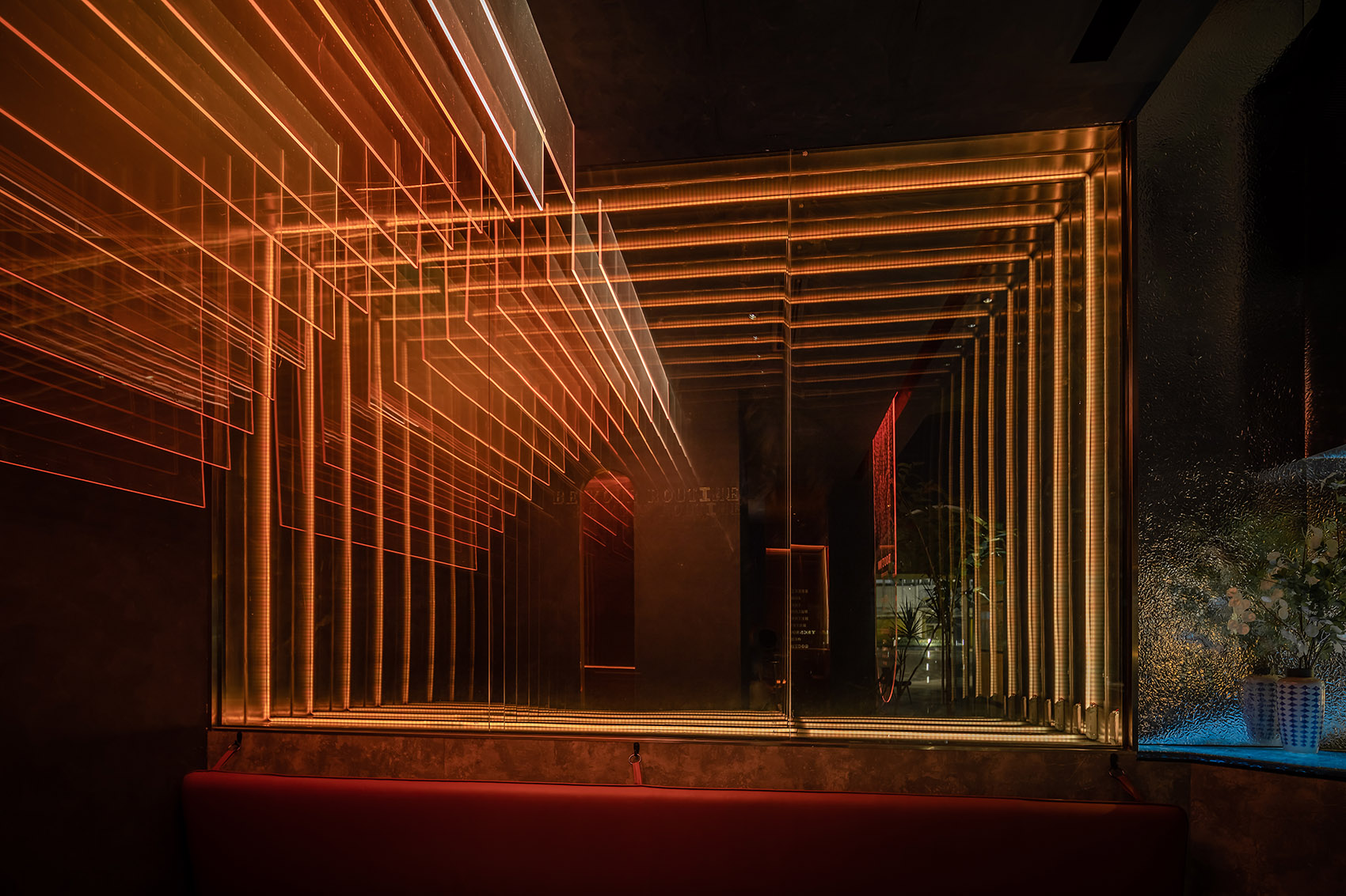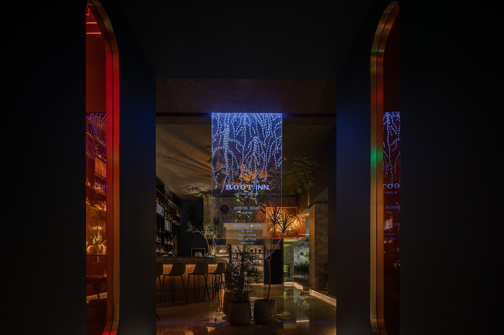 店名root inn字面意思上root译为“植物根系”也是电脑术语“根源、根目录”, 意图用科技的手法挖掘自然界规则下的底层程序,从而展现表象之下的逻辑与想象力。想象力潜伏在表象之下,就如同深埋于地底的植物根系,如果你有足够的想像力跨过表象深入到内核,便可以用自然界正在用高级的配色诠释它生命源头的非凡能量群。