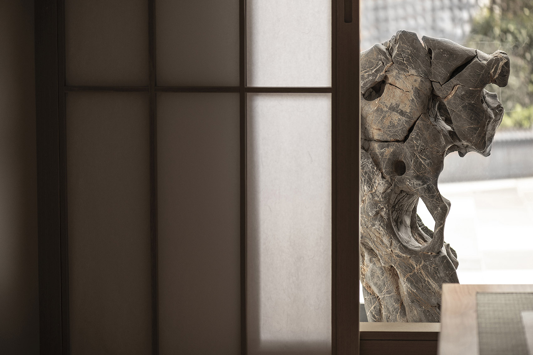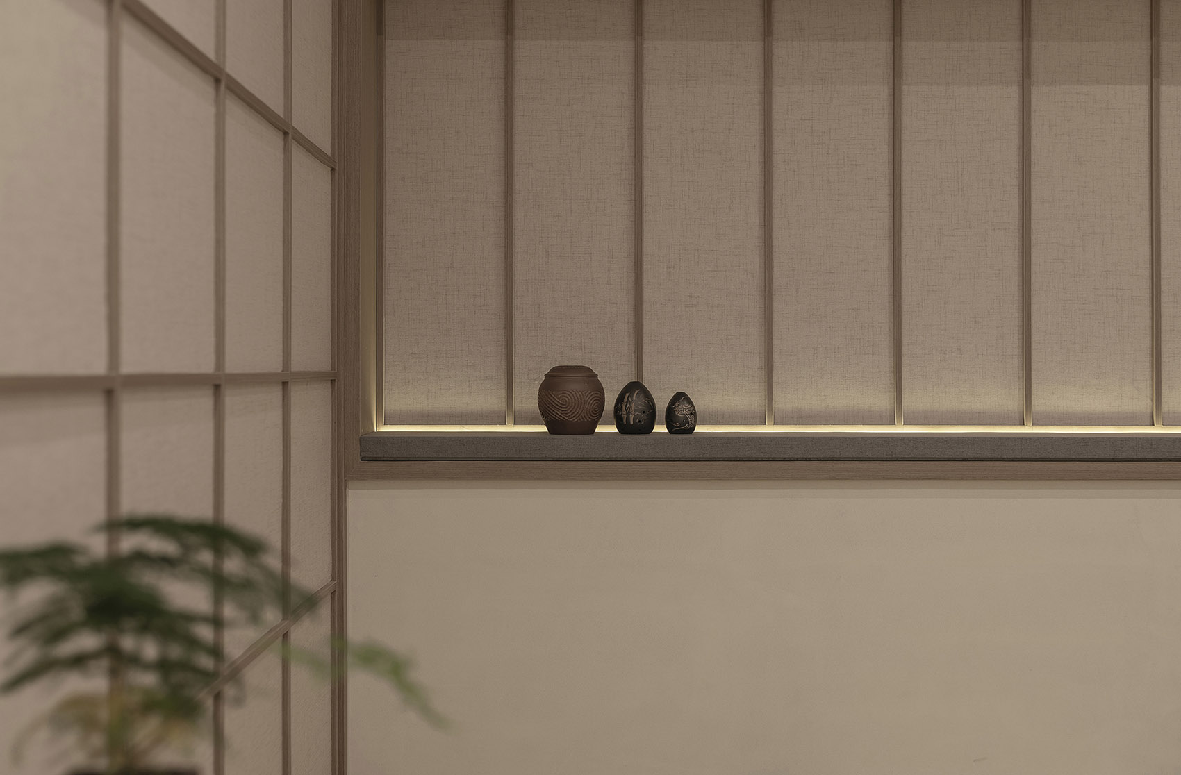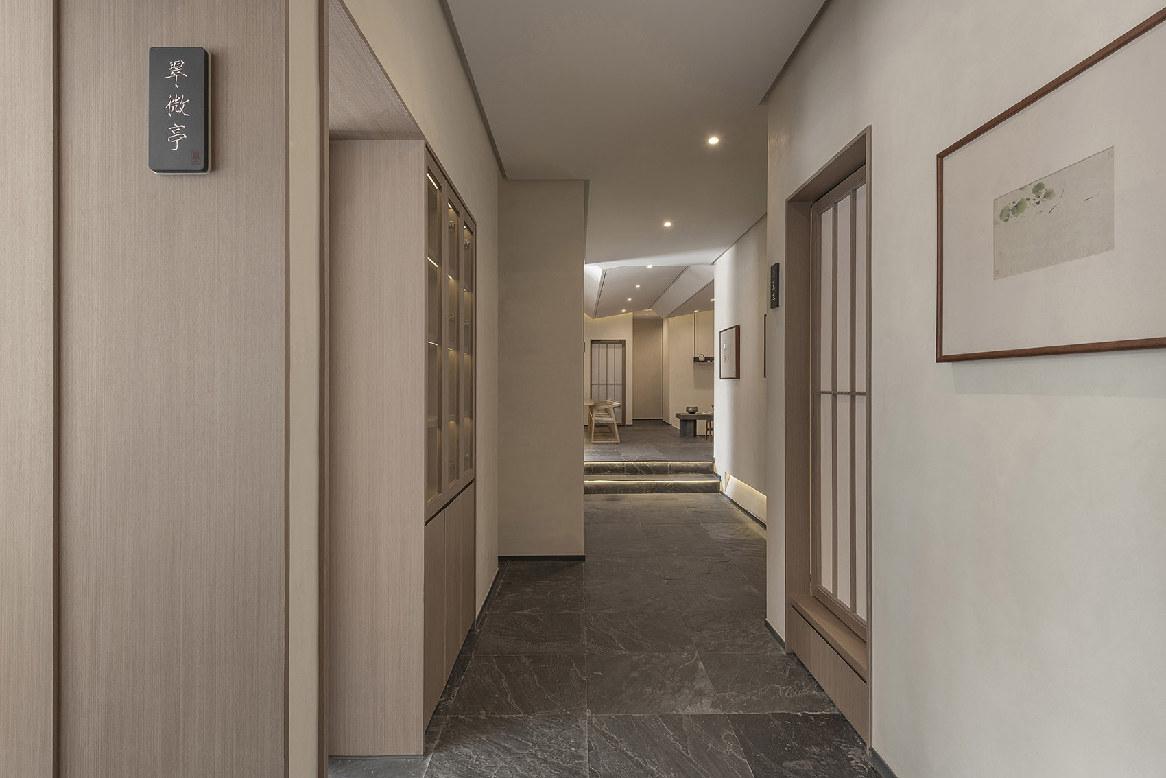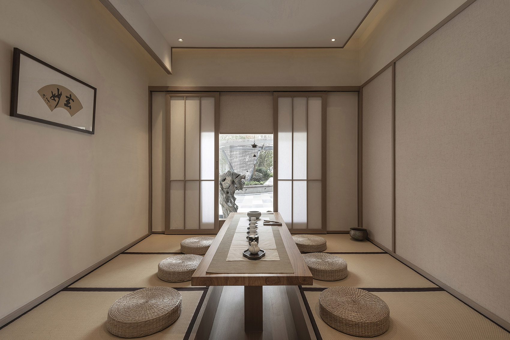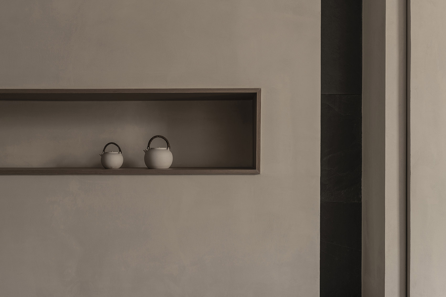 缘起于茶,而不止于茶,由于人们情感的融入,便给予茶之于茶本身之外的语言形象。茶空间即是对茶室主人心境最直观的表达。茶如此,空间亦然。设计师细心品读甲方诉求,意会出“书不尽言、言不尽意”的空间表达意向。在空间氛围设计的表述上,设计师以意造境,观者即境会心,营造立象以尽意的空间感。