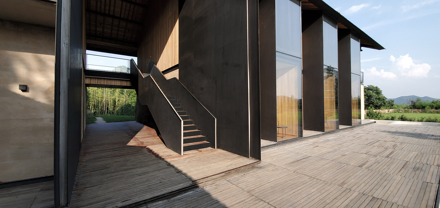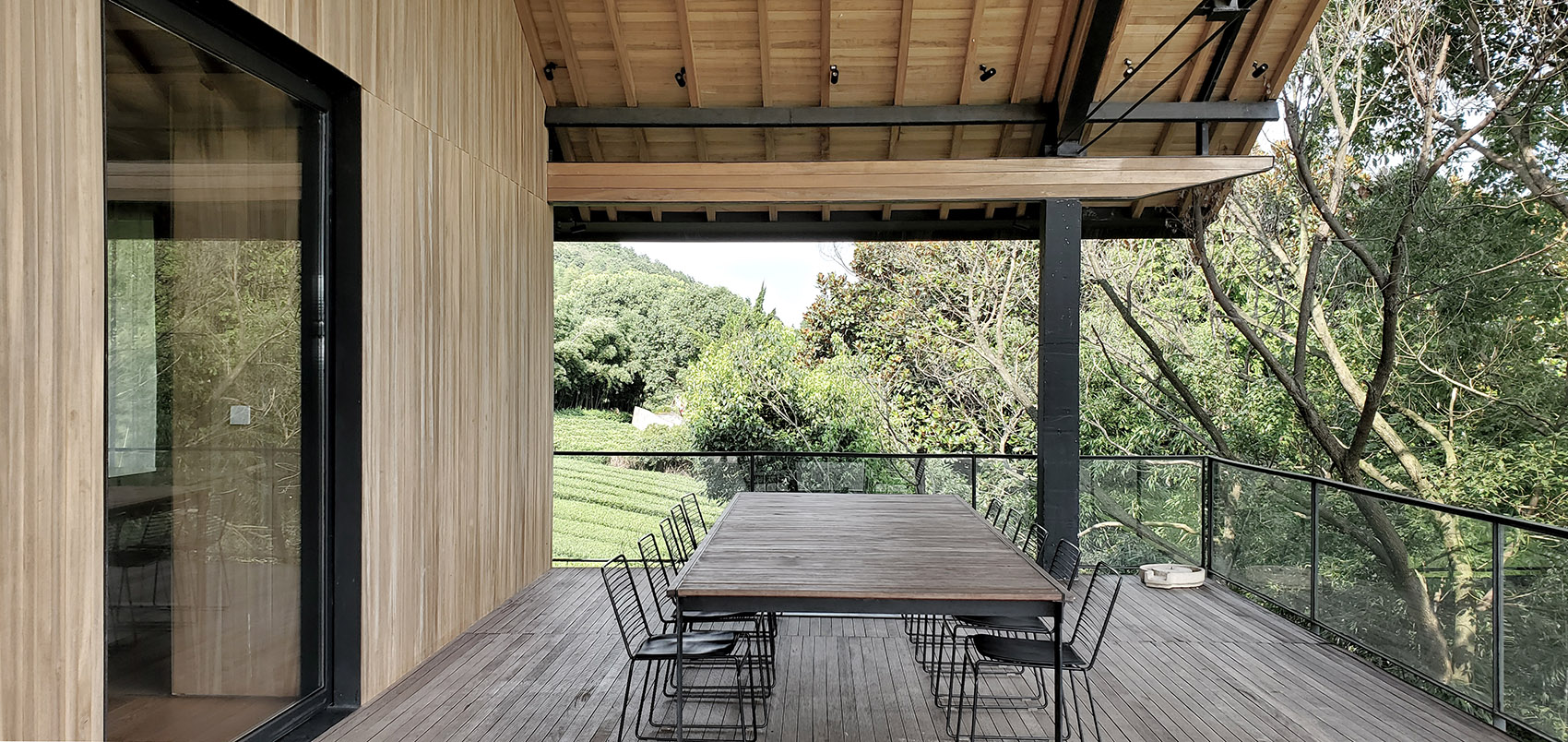 本项目坐落于山脚地势平缓的半坡上,四面环绕竹林,所见之处茶海漫山。作为接待使用的小体量建筑,玫瑰庄园精品酒店是整个规划的第一阶段,设置有服务台、餐厅、多功能等公共区域,以及少量客房。其余项目将在其之后陆续建成,逐渐形成一个建筑群体与自然环境相互融合相互理解的整体。